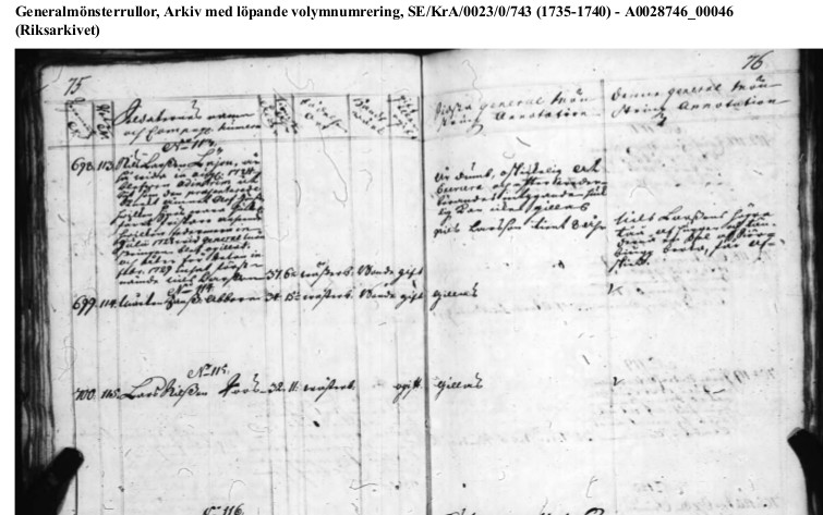 [ Enligt Generalmönsterrulla Livkompaniet vol. 743 25 sept 1735 Reg. nr 698 Rote nr 113 Nils Larsson Leijon fick avsked