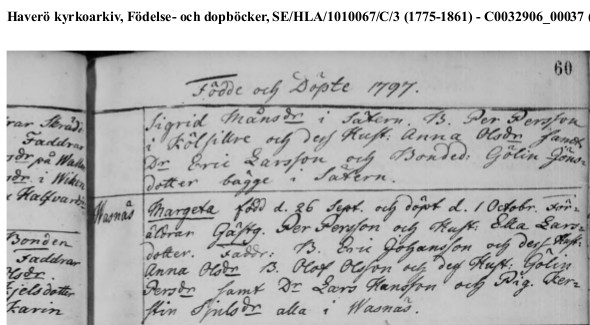 Margareta Persdotter, född 1797-09-27 i Wasnäs,